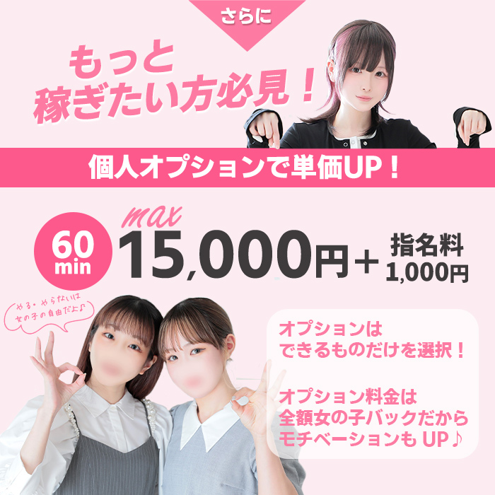 オプション料金全額バックなのが嬉しいポイントです! ほぼ100%のお客様がオプションを付けてくれるし、お給料+オプション代で結構な額になります☆