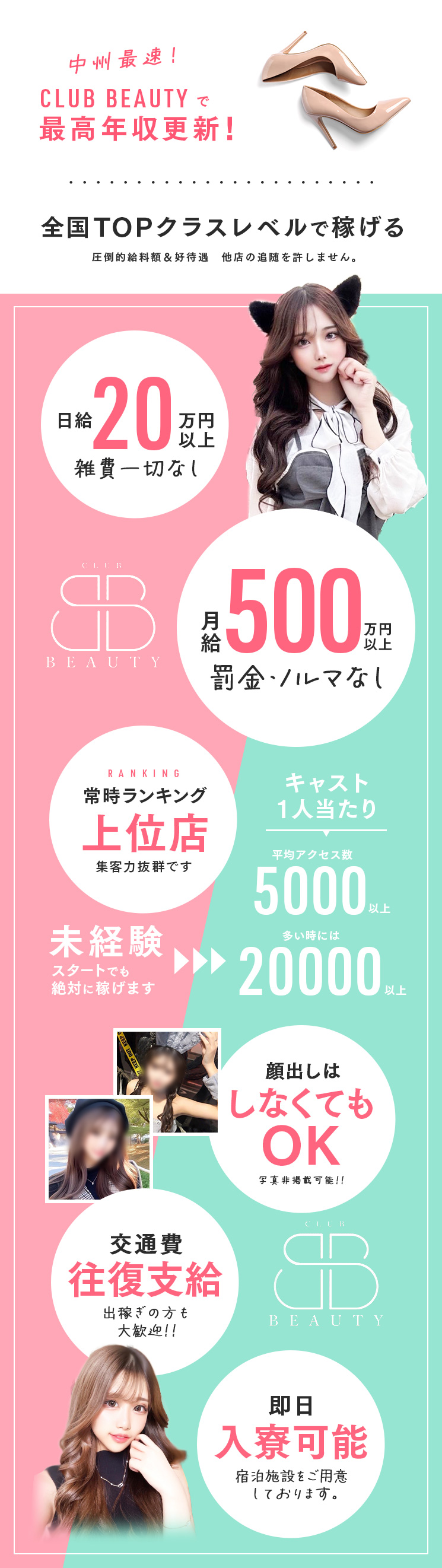 本気で働くならクラブビューティー。全国TOPクラスの圧倒的集客力、中州で常時ランキング上位店!