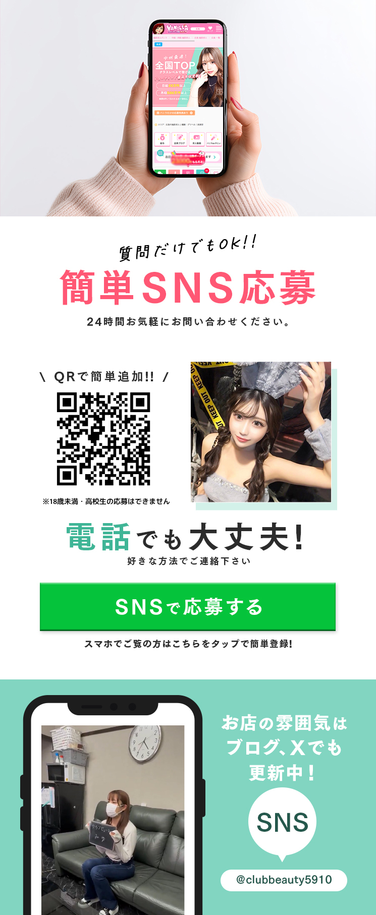 「未経験だし…」「ブランクあるし…」その不安、クラブビューティーでは気にしなくてOKです🙆♀️「未経験って、やっぱ稼げないよね…?」そんなことないです。未経験スタートでも💎 日給10万円以上を目指せる環境あり。実際に👇・初出勤で【7万円】・1週間後には【日給15万円オーバー】…これ、珍しくないです!こんな方も大歓迎👇・しばらくお仕事から離れてた・子育てや生活が落ち着いた・短期間で集中して稼ぎたい働き方は、あなたのペースでOKです◎✔ 未経験OK✔ ブランクOK✔ フォローしっかり✔ ちゃんと稼げるクラブビューティーは、「久しぶり」「初めて」さん向いてます✨