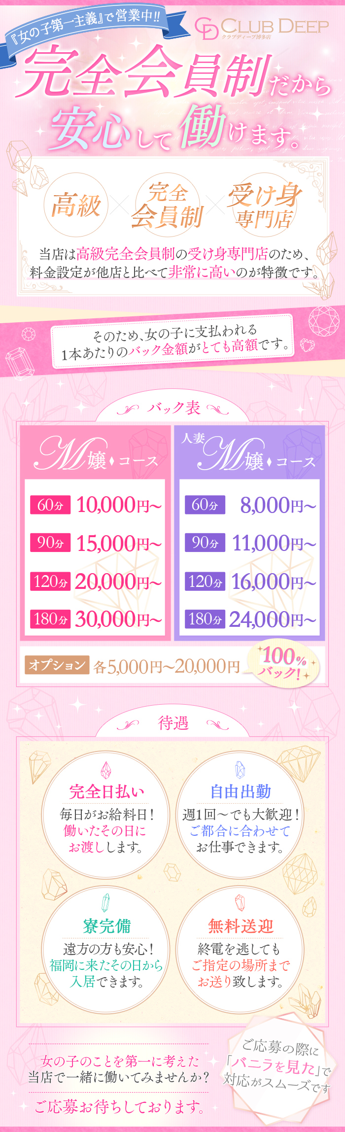 最近、面接に来てくれた子からよく聞く言葉があります。「私って向いてますか?」「他の子みたいにできるかわからなくて…」そんな時にいつも思うのは、悩んでる時点で、もう十分ちゃんとしてるってこと。向いてない人ってそもそも悩まない。「どうしたらいいですか?」って聞けたり、「不安です」って素直に言える子ほど、実はこのお仕事と相性がいいことが多いです。DEEPでは、無理に背伸びをさせることはしません。スピードも、得意なスタイルも、それぞれ違う。“その子のペース”を一緒に見つけていくのが、僕らの役目。最初はぎこちなくていい。言葉が詰まってもいい。できないことがあって当たり前。大事なのはわからないまま頑張らないこと。一人で抱えないこと。そして自分を雑に扱わないこと。ゆっくりでいい。一歩進めたらそれを褒めてあげるくらいでちょうどいい。今日もお店は普段通りゆったりと動いてます。派手さはないけど、その分ひとり一人をしっかり見れる。誰かが無理して疲れてしまうような空気は作りません。“あなたらしく働ける場所”を今日も作っていきます。🔶お問い合わせはこちら🔶求人TEL 093-383-2812求人LINE deepkokura【CLUBDEEP小倉店】