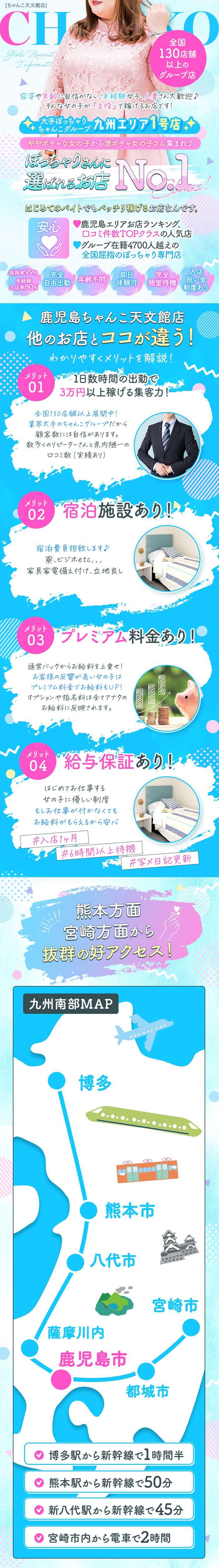 「風俗のお仕事に興味があるけど、 私太っているから・・・」 「どうせ、ぽっちゃりは稼げないんでしょ?」 そんな貴方はぜひ、宮崎ちゃんこ中央通店にお越し下さい! 当店は全国130店舗以上展開する業界トップクラスのぽちゃデリグループ店です! お客様はぽっちゃり大好きな人ばかりで、 安心・安全・安定して働ける! つまり、ぽっちゃり《だから》稼げる店なんです! 私達と一緒に、胸を張って笑顔で稼いじゃいましょう! 貴方のそのコンプレックスは自信に変わります!