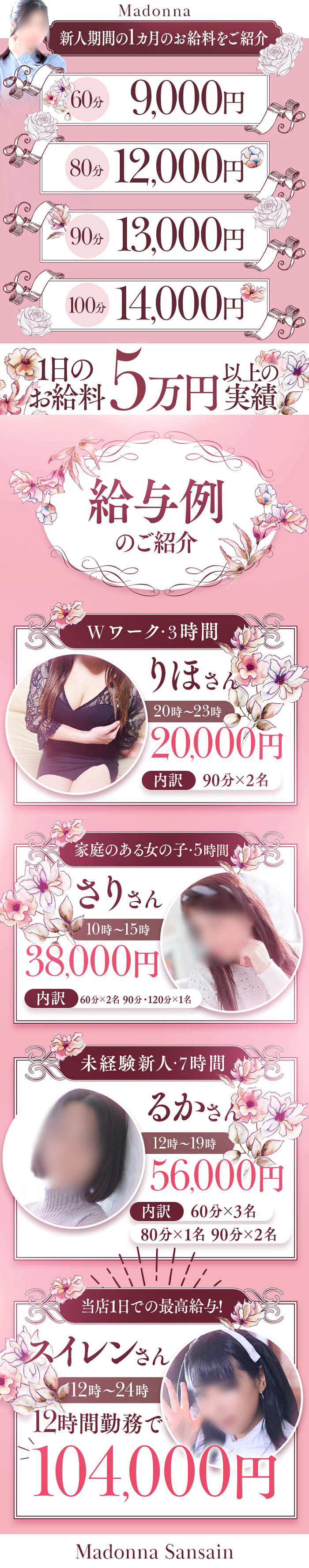いつも「MADONNA」を応援してくださっている皆さんへ。「また働きたいな…」と思ったことはありませんか?一度お店を離れたけど、やっぱり戻りたい、そんな気持ちが少しでもある方へ。私たちは、過去に在籍していたキャストさんの出戻りを大歓迎しています!🌸辞めた理由は問いません!「環境が変わってまた働けるようになった」「やっぱりこの仕事が好きだった」「別のところを経験したけど、やっぱり戻りたい」など、どんな理由でもOKです。🌸ブランクがあっても問題なし!久しぶりで不安な方も、しっかりサポートします!以前の経験を活かして、無理なくスタートできます。🌸待遇や環境もさらに改善!以前と比べて、お店のサポート体制や待遇もパワーアップ!より働きやすい環境を整えています。少しでも気になったら、お気軽にお問い合わせください♪ 「また頑張ってみようかな」と思ったら、ぜひご連絡を!あなたと再び一緒に働ける日を、心から楽しみにしています!