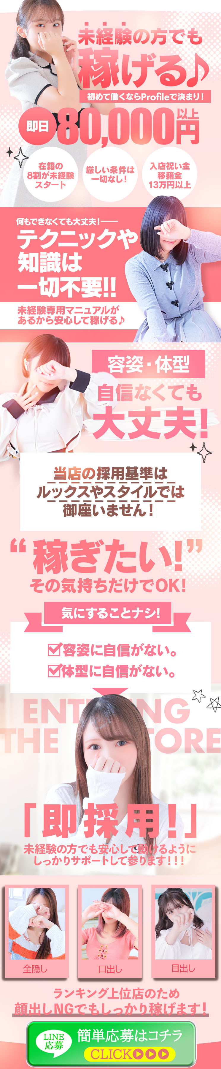 おはようごございます!副店長の宮平です!!!とくに未経験の方に向けて入店までの流れをご説明したいと思います(スマホバージョン)(*'▽') ①このサイトのフォーマットでメッセージを送るトップページのポップアップ(画面を下におくると出てきます)の「SNS」「電話」「応募」「メール」から選んで送ってくださいおすすめは「SNS」のLINEで連絡いただくことですね♪その際は「ガールズ見て連絡しました」と一言添えていただくとわかりやすくて助かります(^O^)/もちろんいきなりLINEは…という方は「応募」や「メール」でメッセージくださいね♪面接までやっちゃおう!という方はここのやりとりで面接日を決めさせていただきますで、とてもお伝えしたいことなのですが「面接日まで決めなくてもいいですよ♪」ということです連絡=面接みたいに捉えて敷居を高くしちゃってる方が多いのかぁって思います。質問だけ、気になることを聞きたいだけ、って方も大歓迎ですので「週三日出るとどれくらい稼げますか?」「彼氏いるけどバレずに出勤できますか?」などなど質問だけでも大丈夫ですので気軽に連絡してきてください(^_-)②面接そんなこんなで面接日が決まりましたらですねその日までドキドキしていただければ大丈夫です( `ー´)ノ当日は自分で来ていただいてもいいですしもちろんお迎えも可能です♪①顔写真付きの身分証明書(免許証、マイナンバーカード、パスポートなど)②本籍地記載の書類(住民票、パスポートなど)の2点をご準備ください♪パスポートなら一発ですね(^_-)そして当日!面接は担当者(だいたい私です)とお話します飲み物持参してお茶会みたいにしちゃって大丈夫ですので気楽にしてくださいね必要ならこちらで飲み物とお菓子用意しときます('Д')面接内容としては書類記入(身分証をコピーさせていただきます)↓お給料やお仕事内容の説明↓担当者から質問↓ご自身の質問↓今日から働いちゃうのか決める!って感じですねもちろんご自身の質問まで終わって「今日は話を聞きに来ただけだからもう帰りますわ」でも大丈夫です♪その時は追って連絡してもいいのかだけ確認してお帰りいただけますのでご安心を!③入店さらにさらに、入店します!ということなら源氏名決めてプロフィールを作って出勤あげちゃいます!これは当日入店でも後日入店変わらずです('◇')ゞとまあ入店まではこんな感じで進めていきますので興味のある方は気軽にお問合せくださいませ!どの段階で引き返していただいても大丈夫ですのでホントにお気軽に!!!みなさんと一緒に働けることを楽しみに待ってます♪