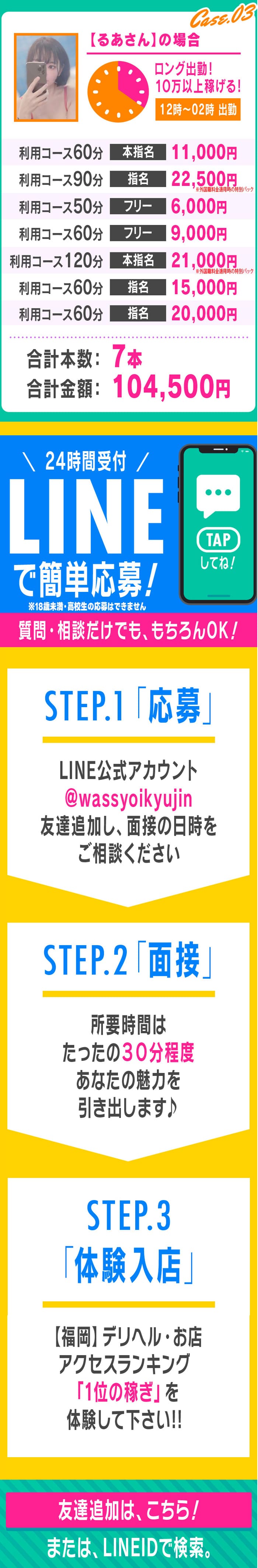 出稼ぎに来た福岡は良質な客層が魅力!お仕事も多くて収入も満足地元から離れてお仕事がしたかった“るあ”さん。友人に福岡を勧められたことがきっかけで同店と巡り合ったという彼女。「この街のお客様はみんな心遣いのある優しい方々。たくさん褒めてもらえるからうれしいです」と笑顔を見せていました。また出勤のたびに複数の予約が入っているため、しっかり稼げているそうです。